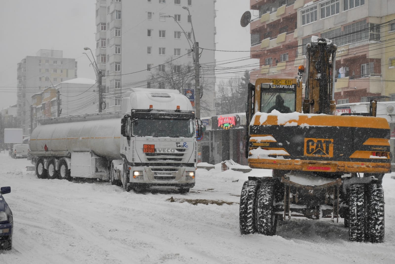 Restricţii de tonaj (7,5 tone) pe sectorul DN 11, între Oneşti – Bacău, din cauza viscolului. Rută ocolitoare Bacău – Adjud – Oneşti!