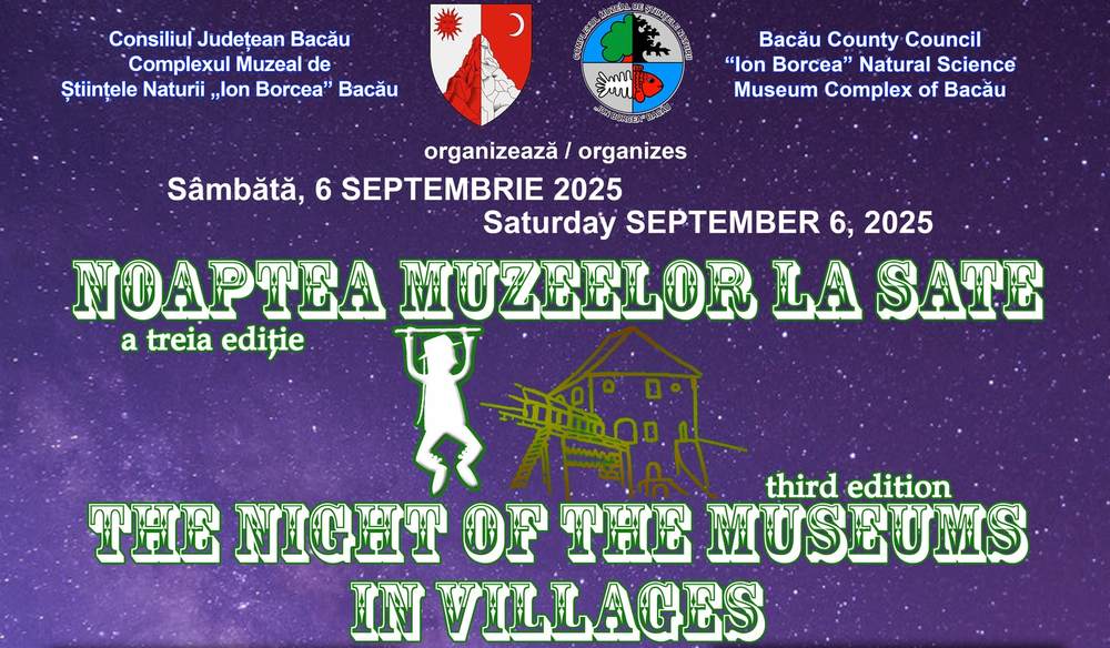 Complexul Muzeal de Știinţele Naturii „Ion Borcea” organizează în data de 6 septembrie 2025 cea de a III-a ediție a evenimentului „Noaptea Muzeelor la Sate” la Casa Memorială „Ion Borcea” din comuna Racova, județul Bacău între orele 18.00-23.00 (22.30 fiind ora de intrare a ultimului vizitator).