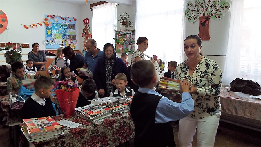 Am intrat doar pentru un minut-două în câte o clasă, în care i-am surprins pe cei mai mici elevi chiar în momentele în care primeau pachetele cu manuale de la învățătoarele lor. Printre bănci i-am aflat și pe unii dintre părinți sau bunici, care nu-și slăbeau din ochi, cu drag, copiii sau nepoții.