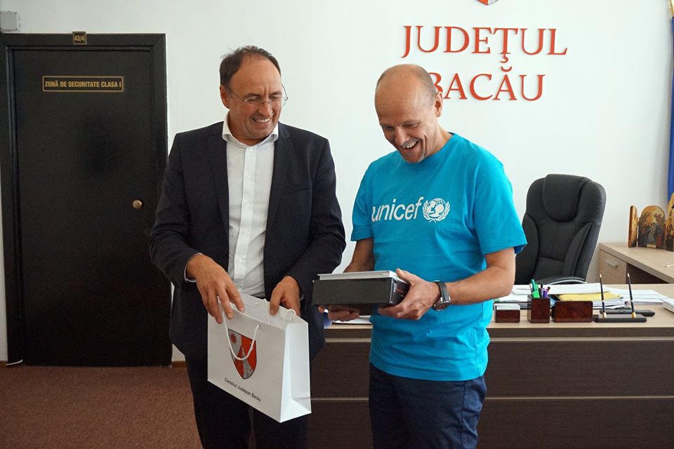 Președintele Consiliului Județean Bacău, Sorin Brașoveanu, a primit azi, 26 iulie 2017, o delegație UNICEF, condusă de domnul Pieter Bult, noul reprezentant al UNICEF în România, care a efectuat prima deplasare în teren, de când a preluat această misiune. Pieter Bult o înlocuiește în această funcție pe Sandie Blanchet, al cărei mandat s-a încheiat în luna iunie 2017.