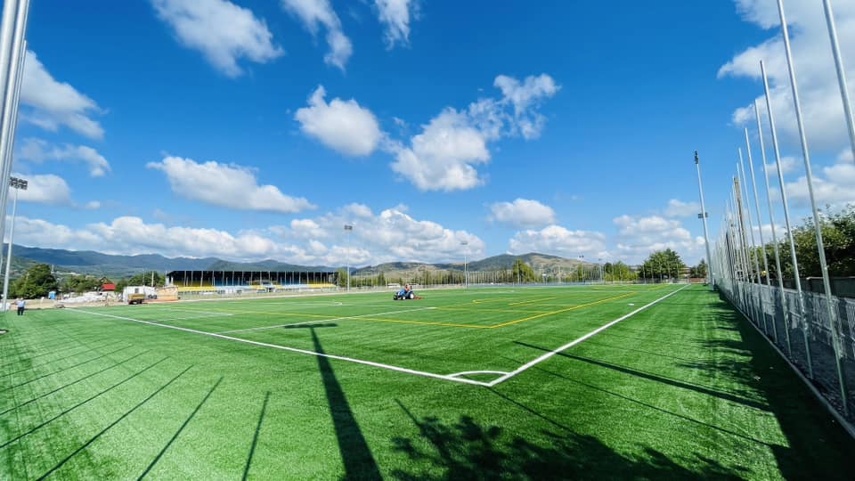 - Un teren de fotbal cu gazon artificial cu o suprafață de 8.833 de metri pătrați, care este aproape finalizat și pregătit pentru a deveni gazda unor competiții sportive de top.