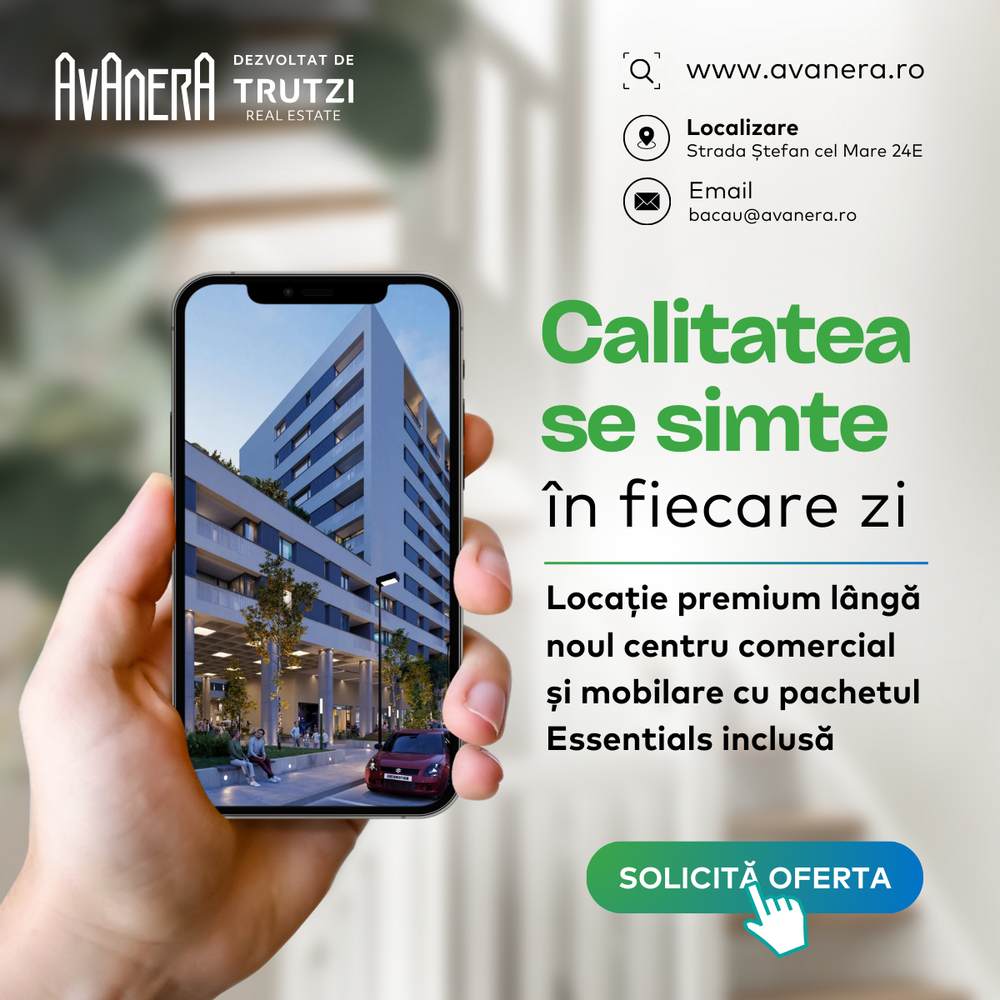 Bacăul trece printr-o etapă de transformare urbană accelerată, iar Avanera este unul dintre proiectele care setează noi standarde pentru locuire. Situat în proximitatea noului centru comercial al orașului și aproape de principalele zone de interes, ansamblul rezidențial oferă o combinație rară: calitate perceptibilă în fiecare zi și accesibilitate reală la tot ce contează.
