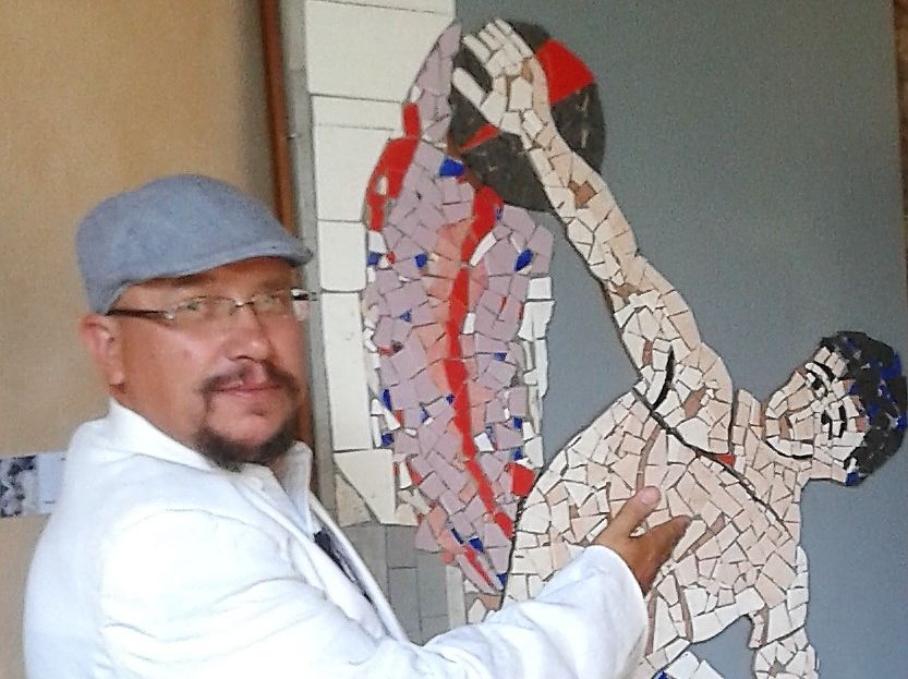 Căutam materiale, marmură, granit, travertin, sticlă etc., aşa am ajuns la un furnizor de materiale care, după un timp, sătul, cred, că-l tot băteam la cap, m-a întrebat de ce nu fac nişte cursuri de mozaicar. Când i-am spus că aş fi interesat, m-a îndreptat către o şcoală, m-am dus, am urmat acea şcoală în arta mozaicului cu un renumit profesor şi artist mozaicar, Giancarlo Romari, am învăţat ceea ce nu ştiam, am început să lucrez, exersam, lucram portrete, tablouri de mici dimensiuni, munceam pe şantier, învăţam, citeam, lucram acasă.