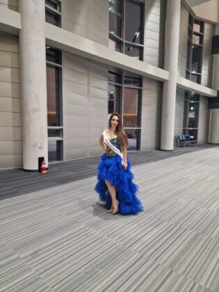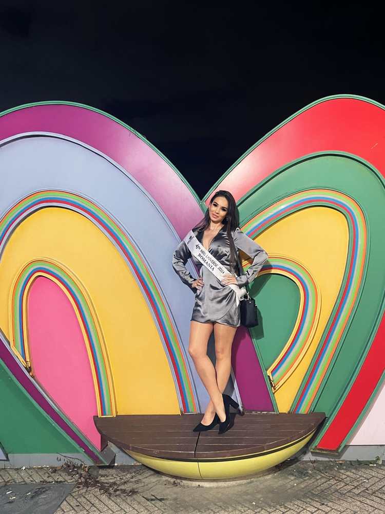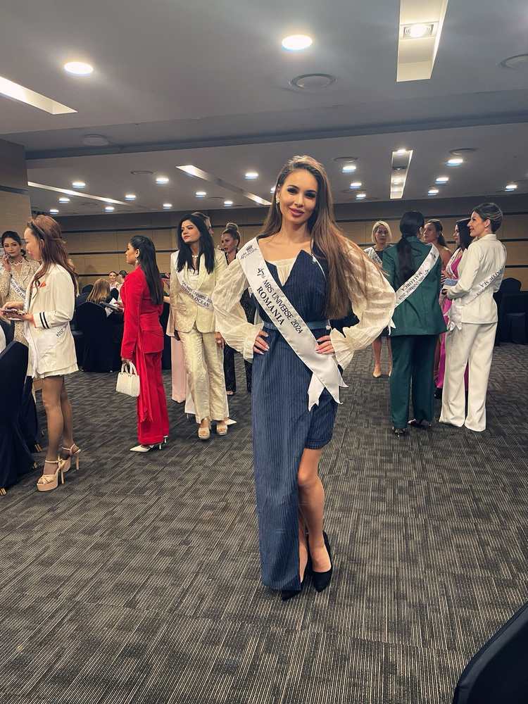 Serile au fost pline de evenimente elegante, cu seri de Ball, unde am avut ocazia să socializez cu alte participante și personalități importante. Am purtat cu mândrie costumul național românesc, un simbol al tradițiilor și identității noastre culturale, aducând un omagiu României. Am defilat pe scenă cu rochia de gală, un moment culminant în care am strigat cu mândrie numele țării noastre, România, sub privirile unui public internațional.