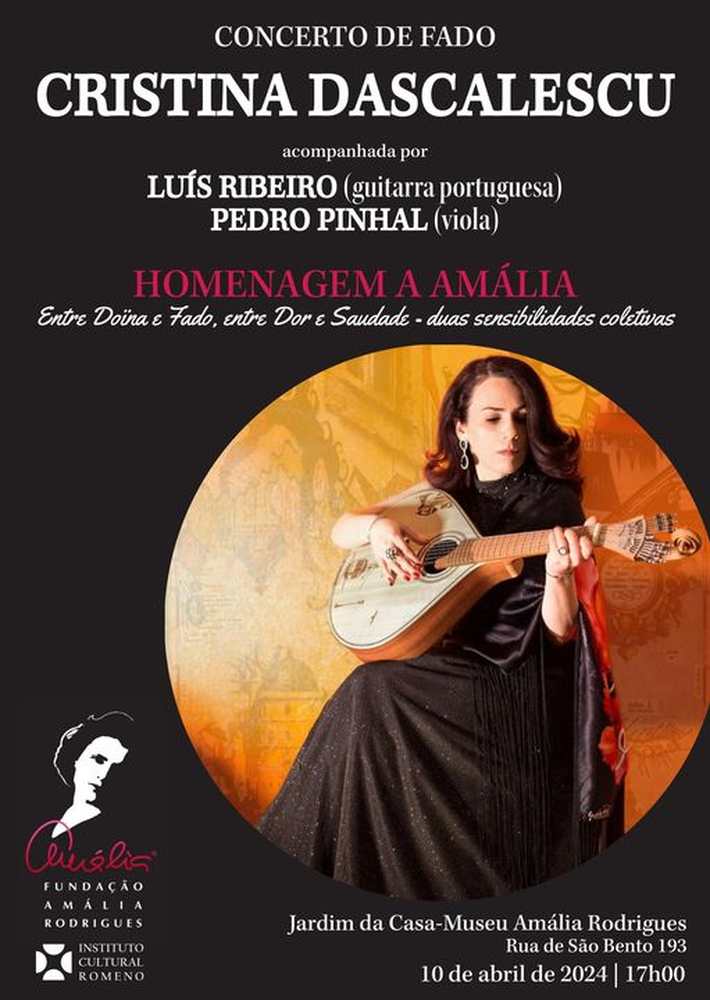 În Grădina Casei – Muzeu ,,Amália Rodrigues” din Lisabona (Portugalia), cântăreața băcăuană de muzică Fado, Cristina Dăscălescu, a susținut, miercuri, 10 aprilie, un concert cu totul special, intitulat ,,Omagiu Amáliei. Între Doină și Fado, între Dor și Saudade – două sensibilități colective”, eveniment muzical organizat de Institutul Cultural Român, în colaborare cu Fundația ,,Amália Rodrigues” din Lisabona.