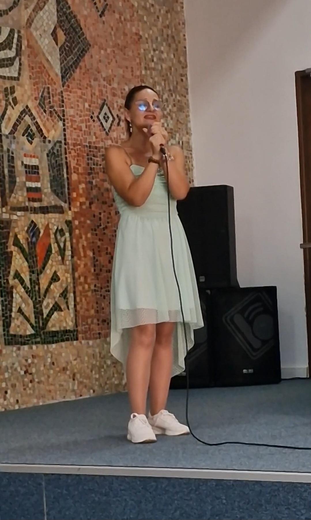 -Mai greu, dar am făcut. Online. Intram în online cu profesoara și încercam să cânt. Am participat la concursuri și pe scenă și online, și am luat și premiul I și II și III. A fost și un concurs online internațional și am luat și un loc II neașteptat… La comcursul ăla m-am înscris și cu o pictură și am luat locul I, și chiar sunt mândră de lucrurile astea. Iar în cadrul școlii am participat în fiecare an la diverse concursuri, spectacole și festivaluri…