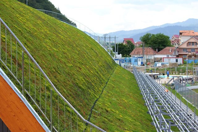 Lucrarea din Comănești a fost finalizată în noiembrie 2015, dar este întreținută și acum de compania ODU Green Roof. „Acesta a fost unul dintre cele mai dificile proiecte realizate într-un timp record de experții noștri tehnici” – spun reprezentanții firmei, care consideră lucrarea unică chiar în Europa de Est. Soluția de structură ultraușoară include elemente de stabilizare – elemente anti-alunecare și vegetație specială consolidată / mix de Sedum / covor.