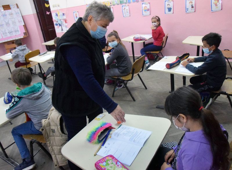 Dirigintă la clasa a V-a, cea mai numeroasă, 19 elevi, prof. Claudia Beatris Ciubotaru lucrează în învățământ din 1998. Predă Limba franceză și Limba engleză: „Munca la școală este aceeași, chiar dacă s-au impus restricții. Nu știu cum a fost în Bacău, dar la noi chiar s-a făcut școală online. Profesorii și-au făcut treaba. Copiii… mai puțin. Așa au înțeles, că nu prea trebuie să intre pe internet. Colaborăm bine, pentru că au început să învețe o limbă străină încă de la grupa pregătitoare. Și avem copii buni în școală. Eu cred că situația este la fel de bună, dacă nu mai bună, și în mediul rural. Sunt mai puțini copii în clasă și, astfel, poți acorda mai mult timp fiecăruia dintre ei.”