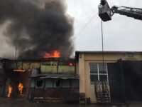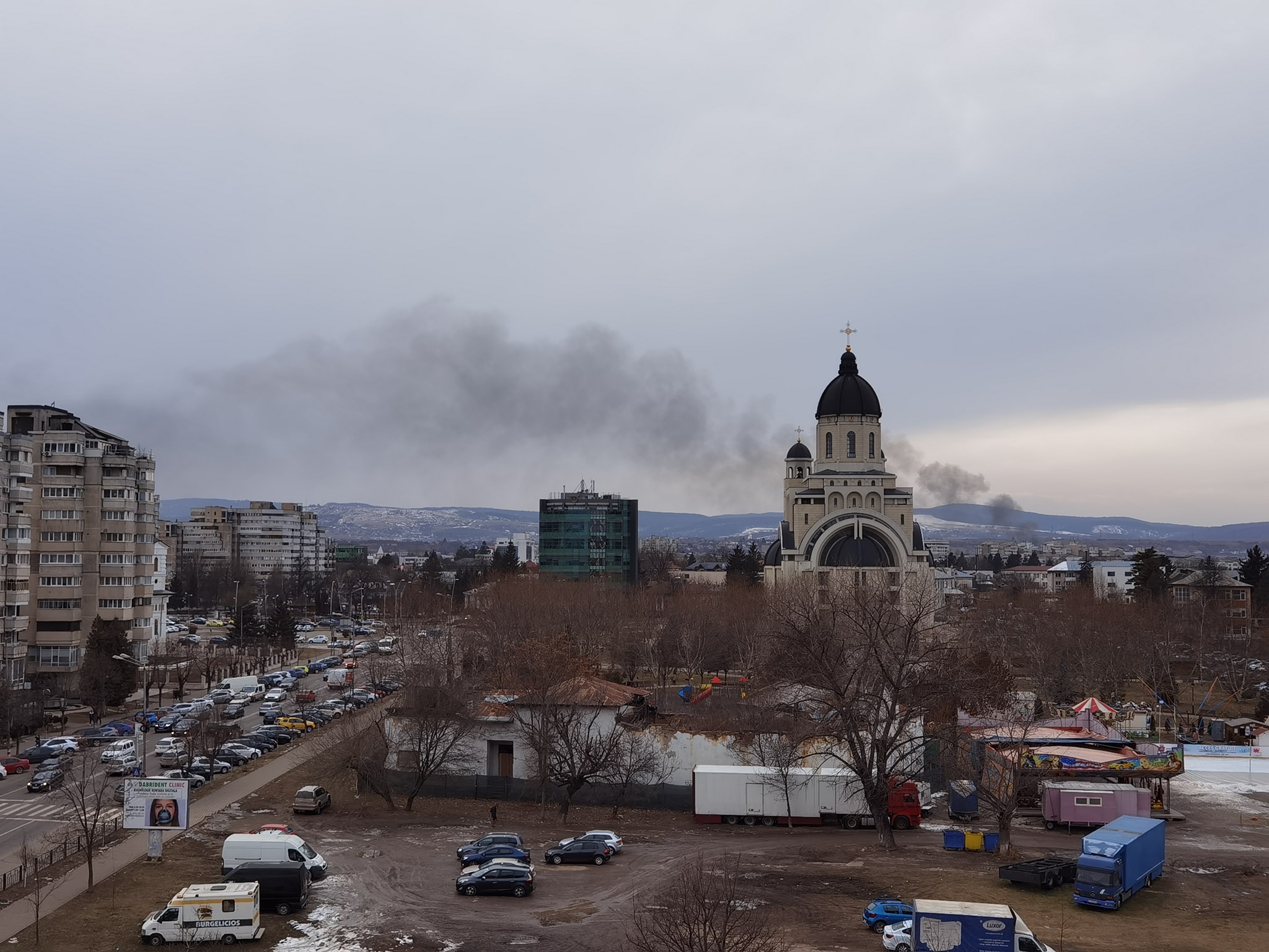 Fumul incendiului se putea vedea din zona centrală a orașului.
