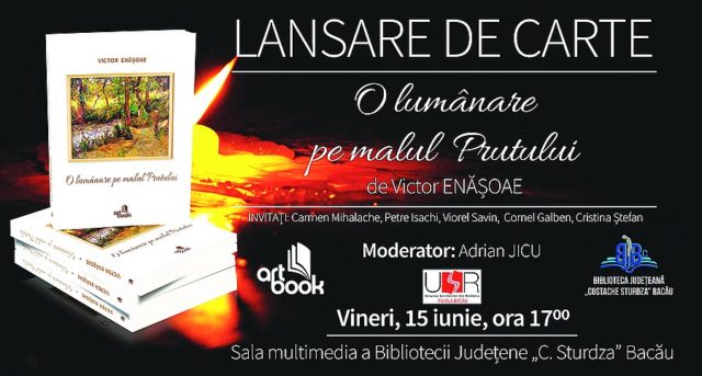 Astăzi, 15 iunie, ora 17.00, la Sala Multimedia a Bibliotecii Judeţene „Costache Sturdza” Bacău, va avea loc lansarea cărţii „O lumânare pe malul Prutului”, de Victor Enăşoae.