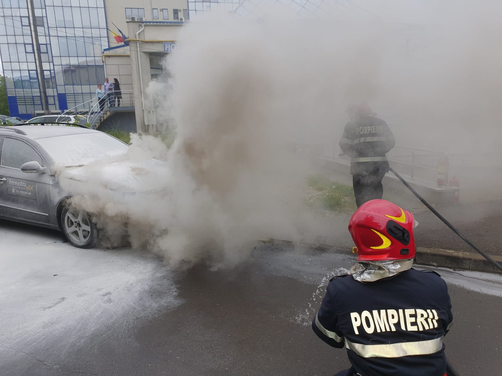 Un autoturism a luat foc, astăzi, în jurul orei 13.45, pe strada Pictor Aman din Bacău.