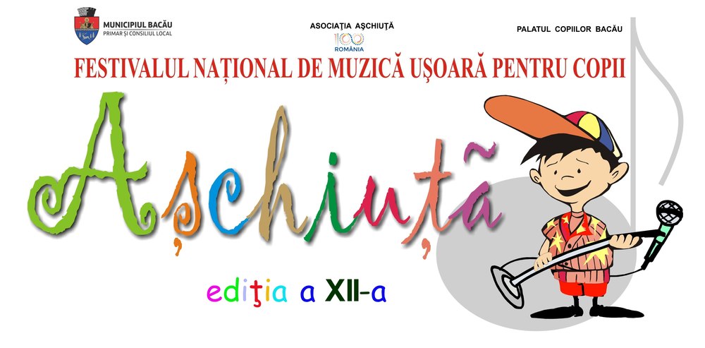 Palatul Copiilor Bacău în parteneriat cu Asociaţia „AŞCHIUŢĂ” Bacău organizează vineri 02 noiembrie 2018, începând cu ora 11:00 în sala Teatrului Municipal “Bacovia” din Bacău, a XII-a ediţie a Festivalului Naţional de Muzică Uşoară pentru Copii ”AŞCHIUŢĂ”.