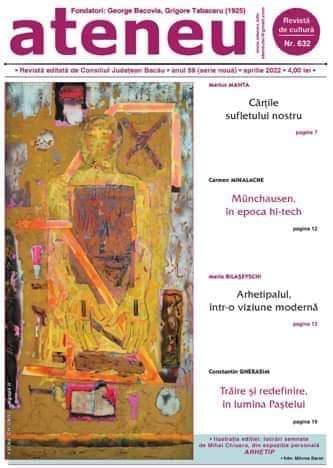 Dacă tot trăim într-o lume cotropită de poezie, ca să-l parafrazez pe poet, încep prezentarea ediției pe luna aprilie a revistei ATENEU (632), cu inspirata alegere de a publica, în pag. 8-9, a unui grupaj de poezii, semnate de trei poeți cunoscuți și citiți astăzi: Marta Petreu, Val Mănescu și Nichita Danilov, premiați ai revistei, în anii trecuți. Poeți care contrazic unul dintre „Cristalele de fum” ale lui Vasile Ghica: „Scriitorii noștri nu mai pot lepăda doliul. Pentru că cititorii dispar unul câte unul, și alții nu se mai nasc”, pe care le găsiți la pag. 10.