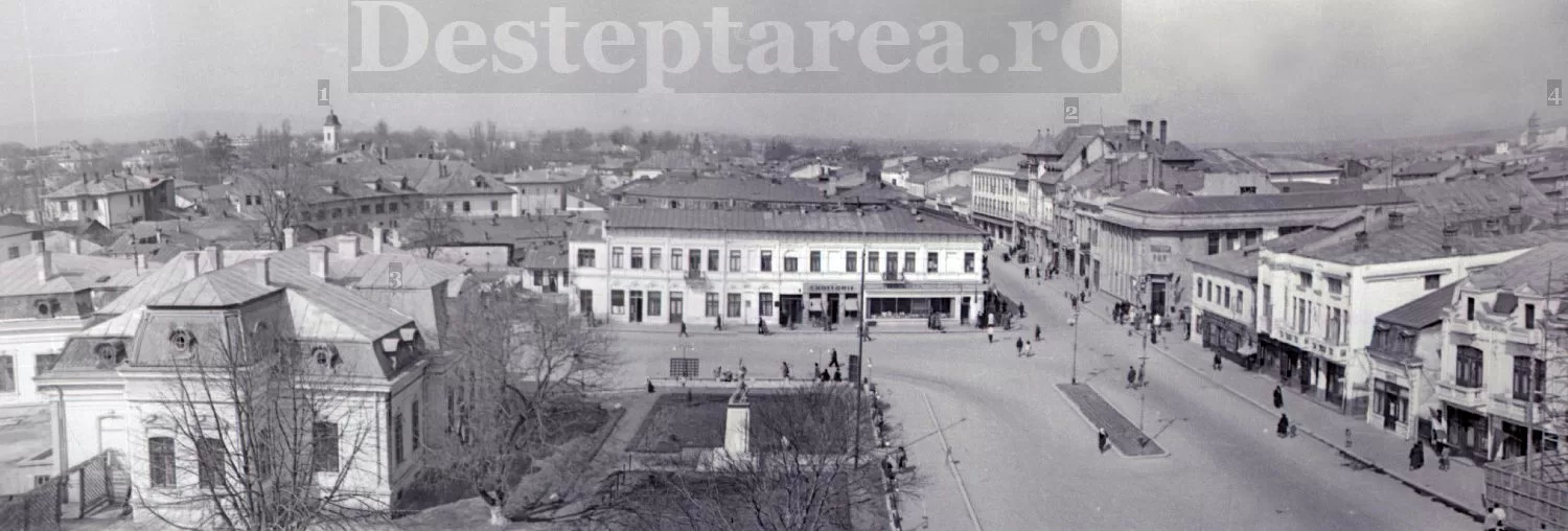 Lipsesc Hotelul Decebal, blocurile și statuia lui George Bacovia, pe locul său fiind Vasile Roaită.