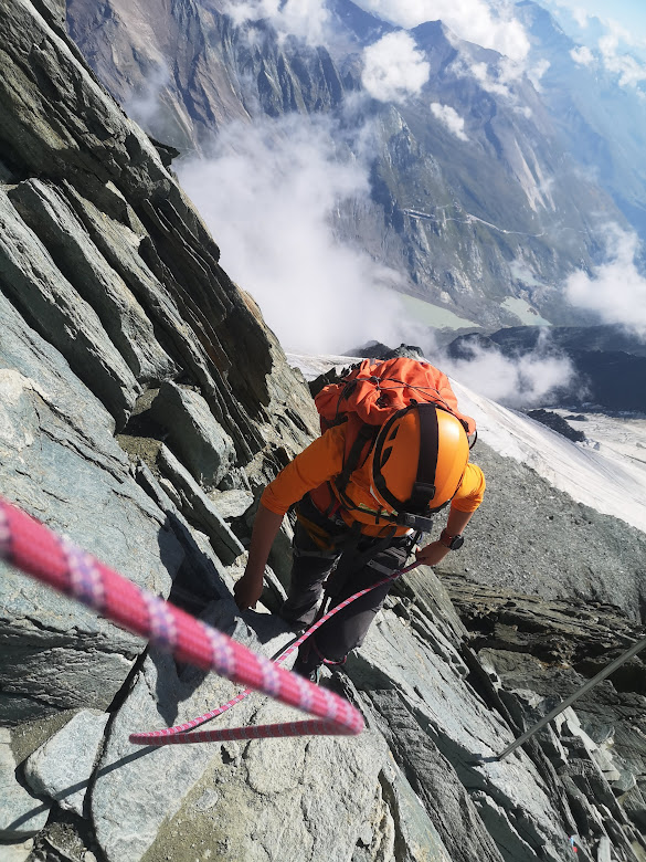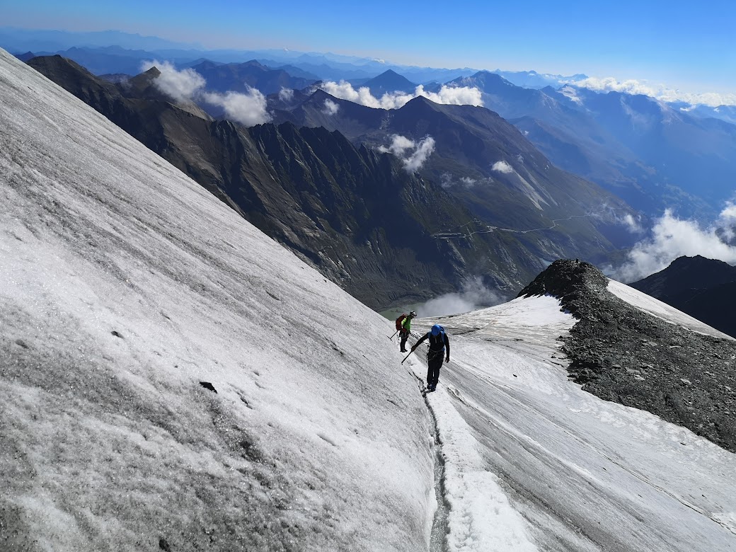 “Întrucat nici aici nu am găsit locuri la cabane sau refugii, am ales să facem un efort de rezistență de o singură zi, în locul celor 2-3 zile, cum se urca în mod uzual. Am plecat la 3 dimineața din Kals și am ajuns înapoi la ora 20.00. Am fost surprins neplăcut de viteza incredibilă cu care s-a topit o bună parte din ghețar în doar 7 ani.. Această topire accelerată a mărit crevasele și a determinat ca pietrele să devină foarte instabile, în perioada amezii existând un grad ridicat de risc ca în anumite zone să d fi lovit de bolovani.