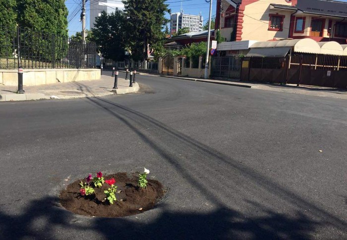 Actiunea nu este o noutate; acum cativa ani, strada Chimiei a primit vizita gradinarilor, care au plantat garoafe in gaurile din carosabil iar la finele lunii aprilie, gropile de pe strada Nicu Enea au avut parte de un tratament similar.
