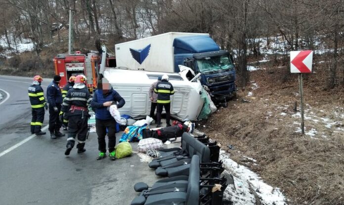 Cinci persoane au fost rănite, astăzi, într-un accident petrecut în comuna băcăuană Oituz, între un camion al unei companii de curierat și un microbuz.