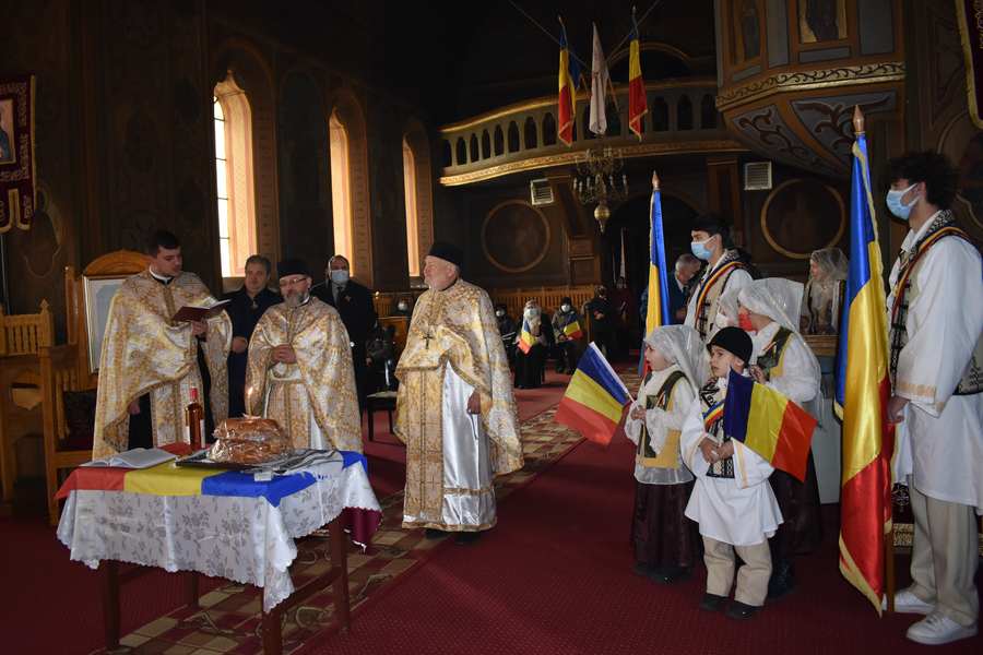 Manifestările au început cu Utrenia și Slujba Sfintei Liturghii, susținute de preotul paroh Sînel Lăzărel și preoții Ioan Bitir și Petru Nicolae Toma, care au continuat cu o Slujbă de pomenire a Eroilor și a făuritorilor Marii Uniri.