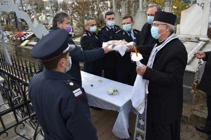 La mormânt, preotul Mihai Beicu, parohul bisericii „Intrarea Domnului în Ierusalim” situată în apropierea IJSU Bacău, a oficiat o slujbă de pomenire, în prezența maiorului Ionuț Hîncu și a căpitanului Adrian Cozma. La slujba de pomenire au venit și Dănuț Voicu, președinte al Filialei „Colonel Corneliu Chirieș” a ANCE „Regina Maria”, și prim-vicepreședintele filialei, Cristinel Aioanei.