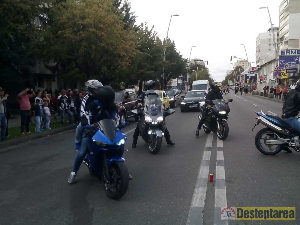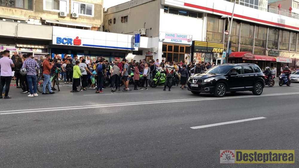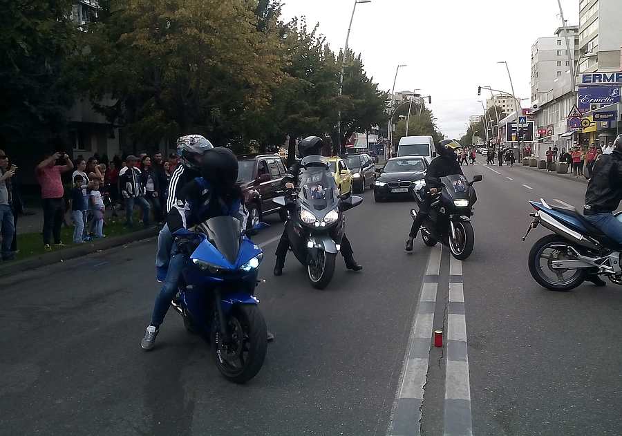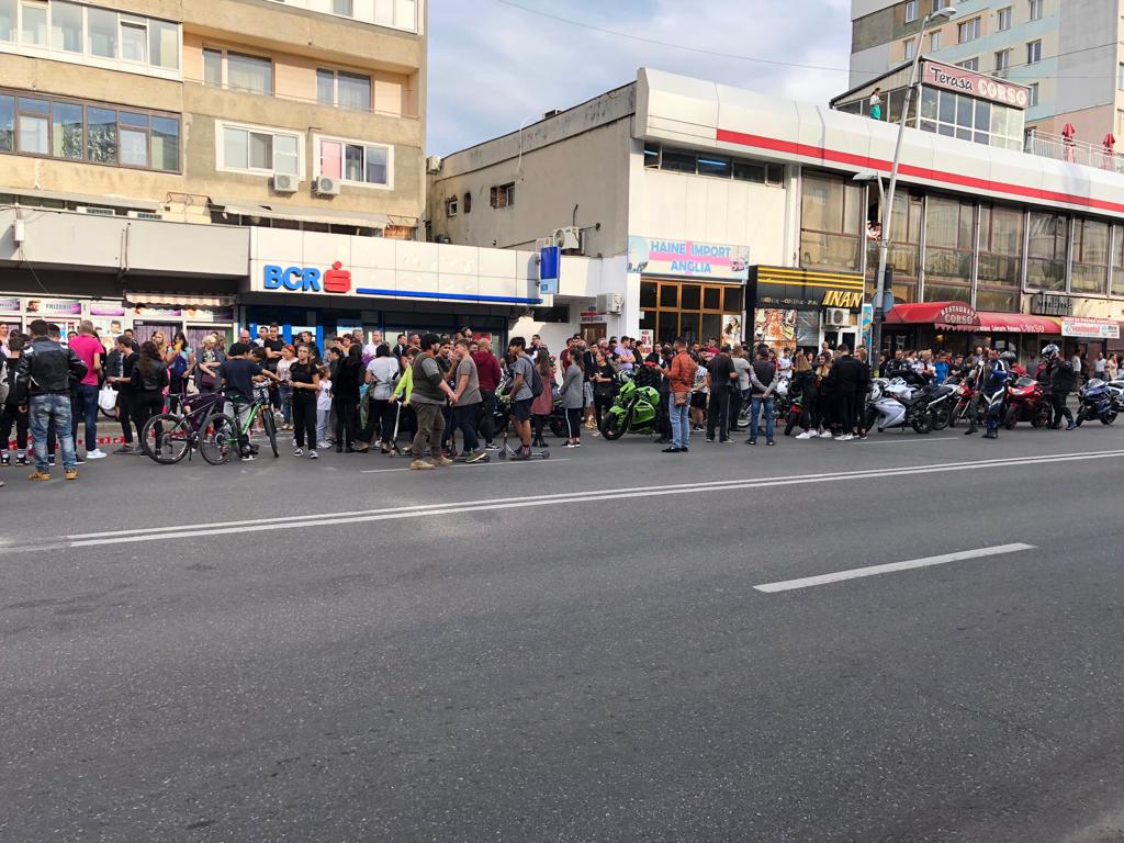 Ulterior au început să apară și motocicliștii, care au turat motoarele dar si politistii și jandarmii. Politia Rutieră a închis circulația între Podul Narcisa și intersecția de la Tic-Tac, în vreme ce mulțimea a umplut strada.