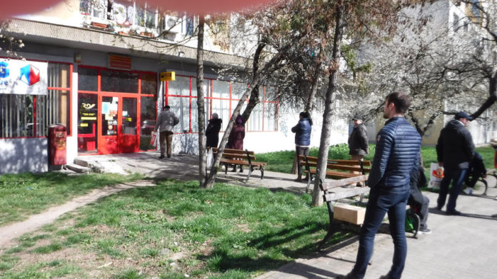 Aceeaşi situaţie am văzut-o şi la unele bănci, farmacii şi la oficiile poştale. La o bancă de pe Mioriţei puteau intra doar câte o persoană la fiecare ghişeu, celelalte aşteptau afară, încolonaţi, la distanţă asiguratorie, de 1 – 1,5 m, aşa cum recomandă medicii.