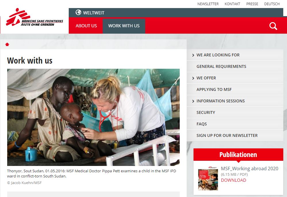 Organizația caută oameni care își doresc să se implice în misiunile de salvare din cele mai defavorizate zone din lume, oameni capabili să se adapteze la situații noi, apți să improvizeze, rezistenți la stres și care au cunoștințe de engleză și/sau franceză. Costurile de transport, vize, cazare, diurnă, vaccinuri sunt acoperite de organizație. Misiunile pot dura între 1 și 12 luni și sunt plătite, deși nu salariul ar trebui să fie motivația celor care aplică, ci faptul că-i pot ajuta pe cei care au nevoie de acces la servicii de sănătate.