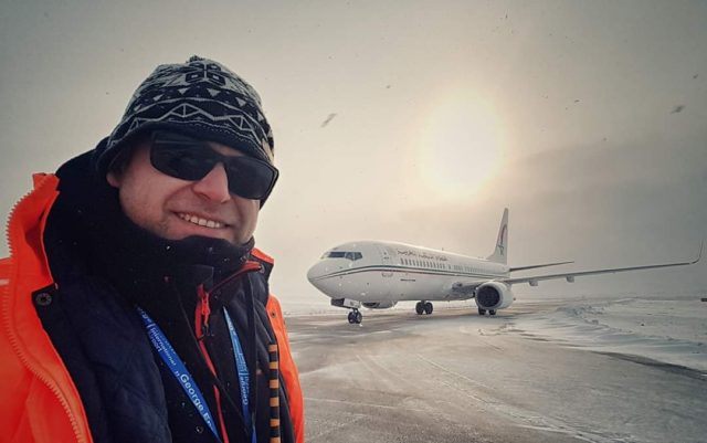 Iulian Radu, 39 de ani, de la serviciul „Operațiuni Sol”, răspunde, alături de colegii săi, de siguranța aeronavelor din momentul aterizării până la următoarea decolare. Profesor de geografie în prima tinerețe, el s-a reprofilat și a intrat în echipa Aeroportului Bacău în 2007, iar acum este îndrăgostit de aviație. Dispecerul de la sol răspunde de starea pistei, a căilor de rulare, a platformei și coordonează toată activitatea de îmbarcare și debarcare. „Sezonul cel mai greu este, firește, iarna, atunci când pentru a ține pista «la negru», oameni și utilaje lucrează non-stop, sub presiunea timpului, pentru a permite aeronavelor să aterizeze sau să decoleze la timp și în siguranță”, explică Iulian Radu. Cele mai mari emoții sunt provocate de cazurile medicale în care dispecerul este anunțat că în câteva minute va sosi o ambulanță cu un bolnav și va ateriza un elicopter SMURD sau avion medical ca să-l preia. În acele momente, organizarea este contra timp și trebuie să fie perfectă. De zece ani, Iulian e pasionat de fotografie aviatică, timp în care a realizat o colecție de peste 10.000 de fotografii, artistice și tehnice, cu toate avioanele care au tranzitat Bacăul. Încă nu e familist, dar va fi în curând. A cerut-o de soție pe logodnica sa „la înălțime”, așa cum îi stă bine unui tip pasionat de avioane, mai exact pe Vârful Moldoveanu.