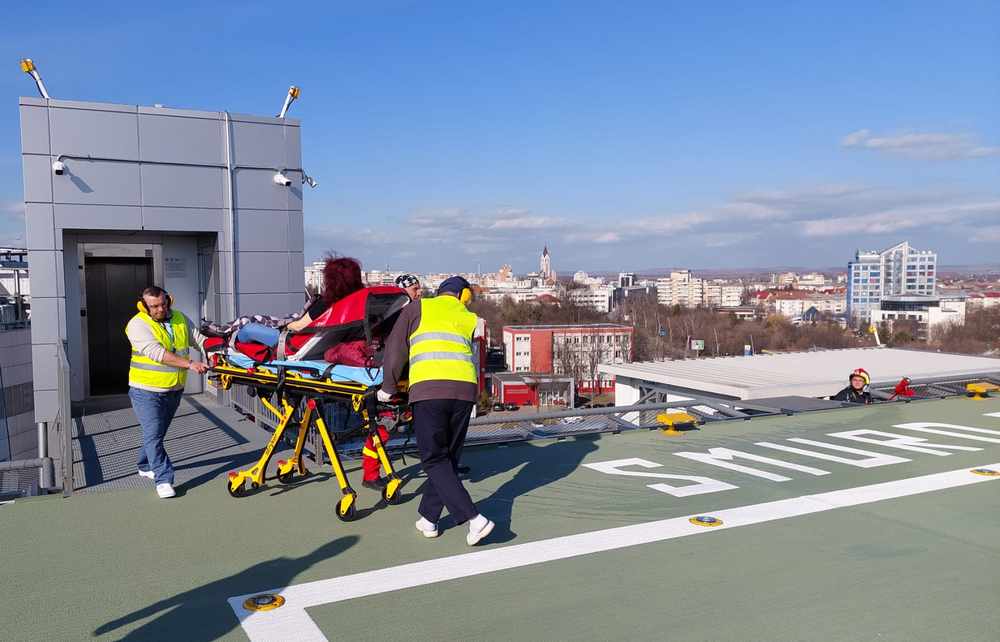 Misiune aeromedicala la heliportul Spitalului Judetean de Urgenta Bacau: La ora 14:55 , o pacienta in varsta de 50 de ani, diagnosticata cu infarct miocardic acut a fost transferata la Spitalul Sfantul Spiridon din Iasi pentru tratament de specialitate.