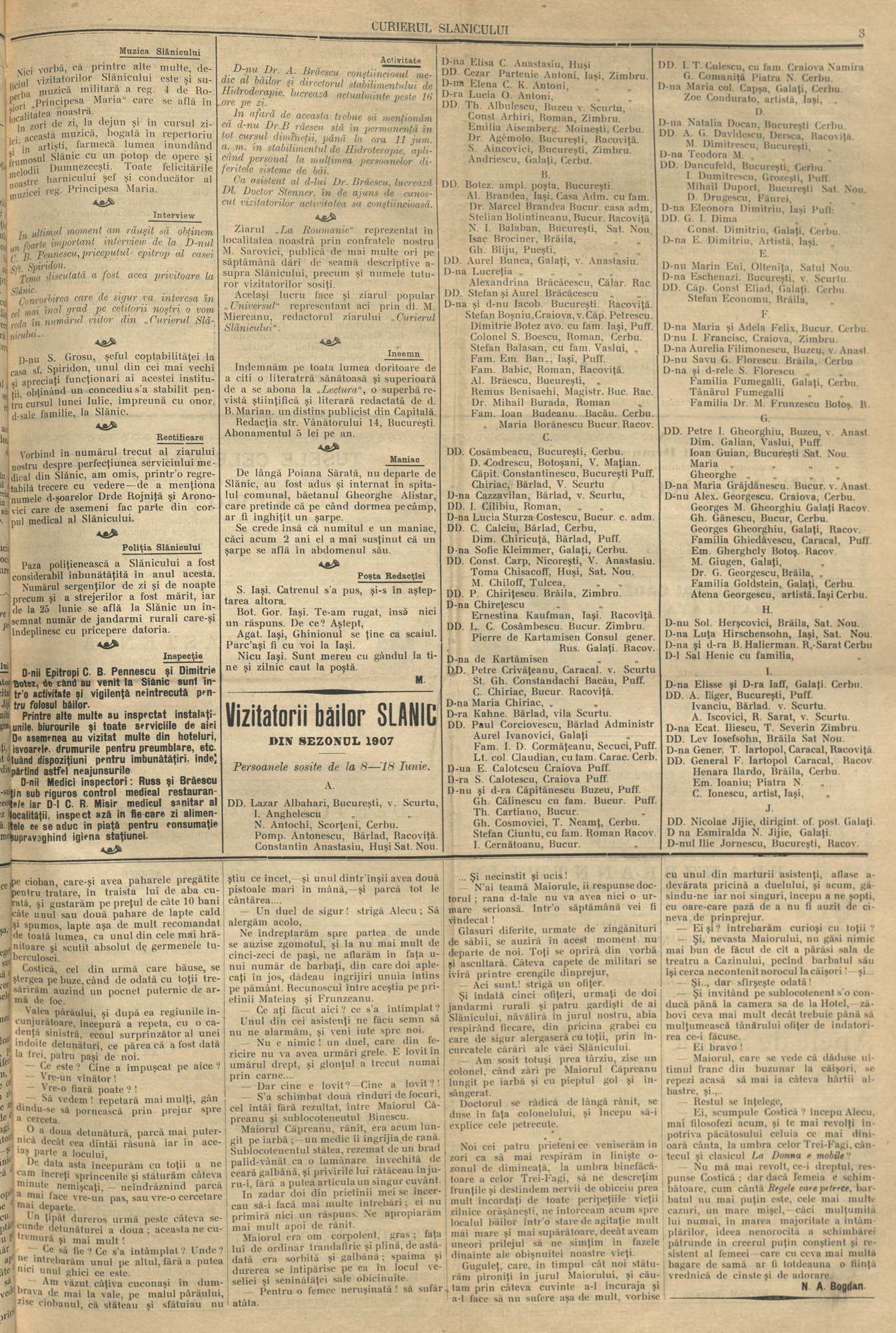 În acest episod: ,,Curierul Slănicului Moldovei”, Nr. 3, Anul V, Marți, 10 iulie 1907.