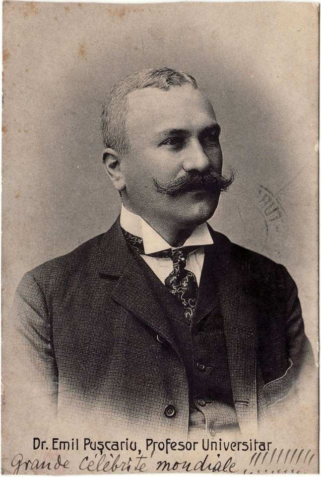Sursa foto Emil Pușcariu (în partea de jos apare o însemnare în franceză tradusă ca ,,mare celebritate mondială!”): Adrian Popovici, Iași.