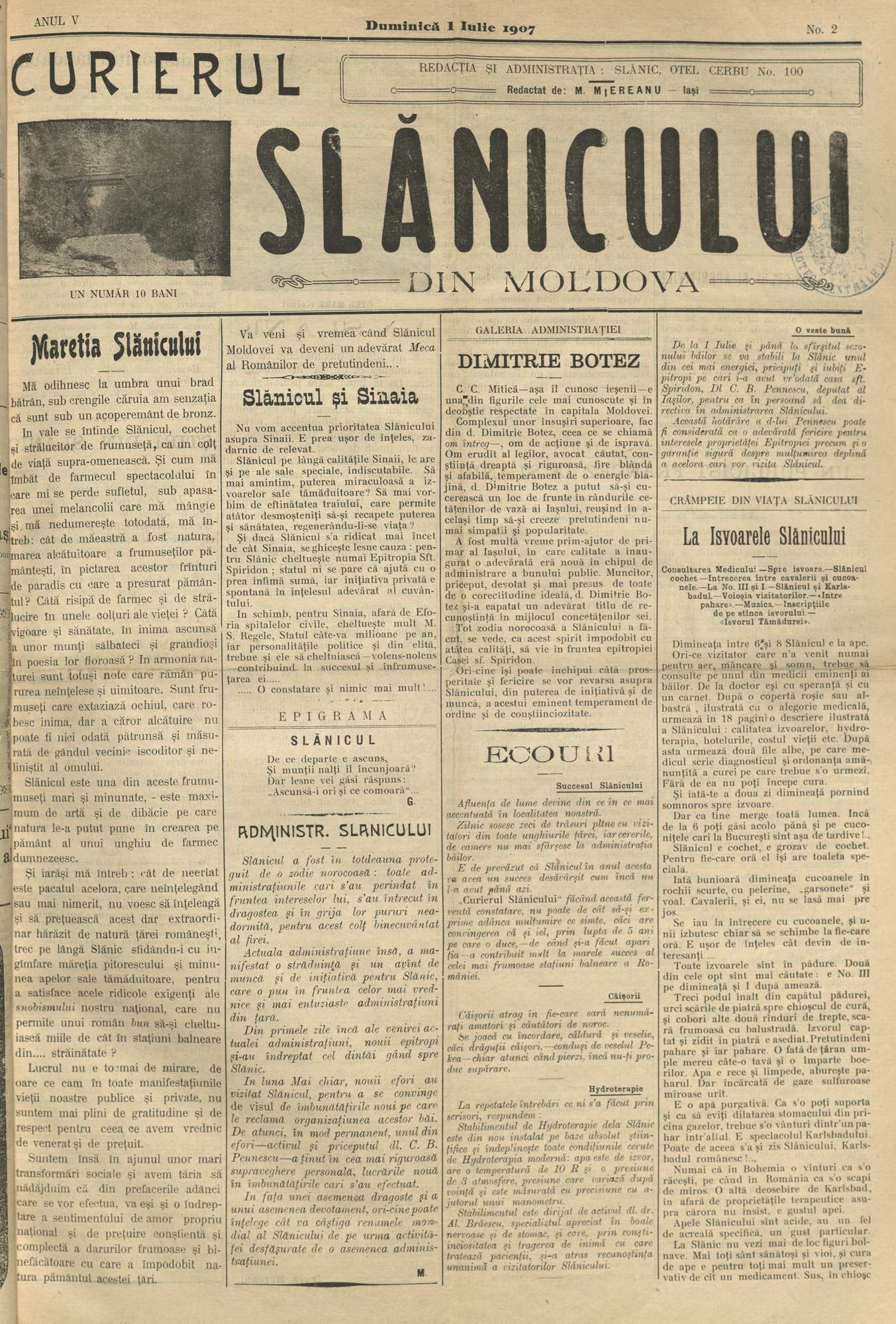 În acest episod: ,,Curierul Slănicului Moldovei”, Nr. 2, Anul V, Duminică, 1 iulie 1907.