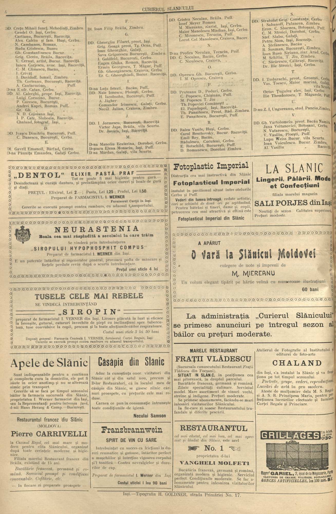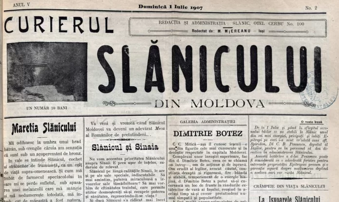 Continuăm prezentarea serialului dedicat ziarului ,,Curierul Slănicului Moldova” (din colecția Bibliotecii Centrale Universitare ,,Mihai Eminescu” din Iași – BCU), primul din România care a oglindit viața unei stațiuni balneare.