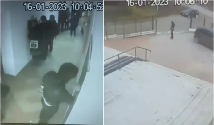 Individul a intrat cu un cuţit şi în sediul primăriei din comună sub privirile îngrozite ale oamenilor care se aflau pe holul de la intrare.