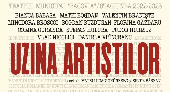 Teatrul Municipal „Bacovia” prezintă pe 20 și 22 ianuarie 2023, de la ora 18.00, premiera spectacolului „UZINA ARTIȘTILOR”, după un text scris de Matei Lucaci Grunberg și Sever Bârzan.