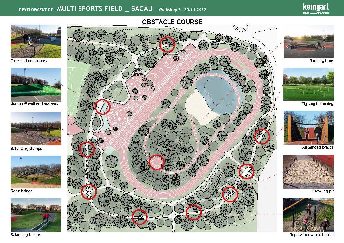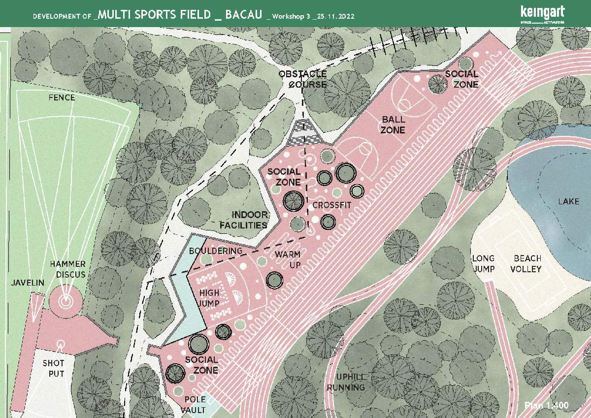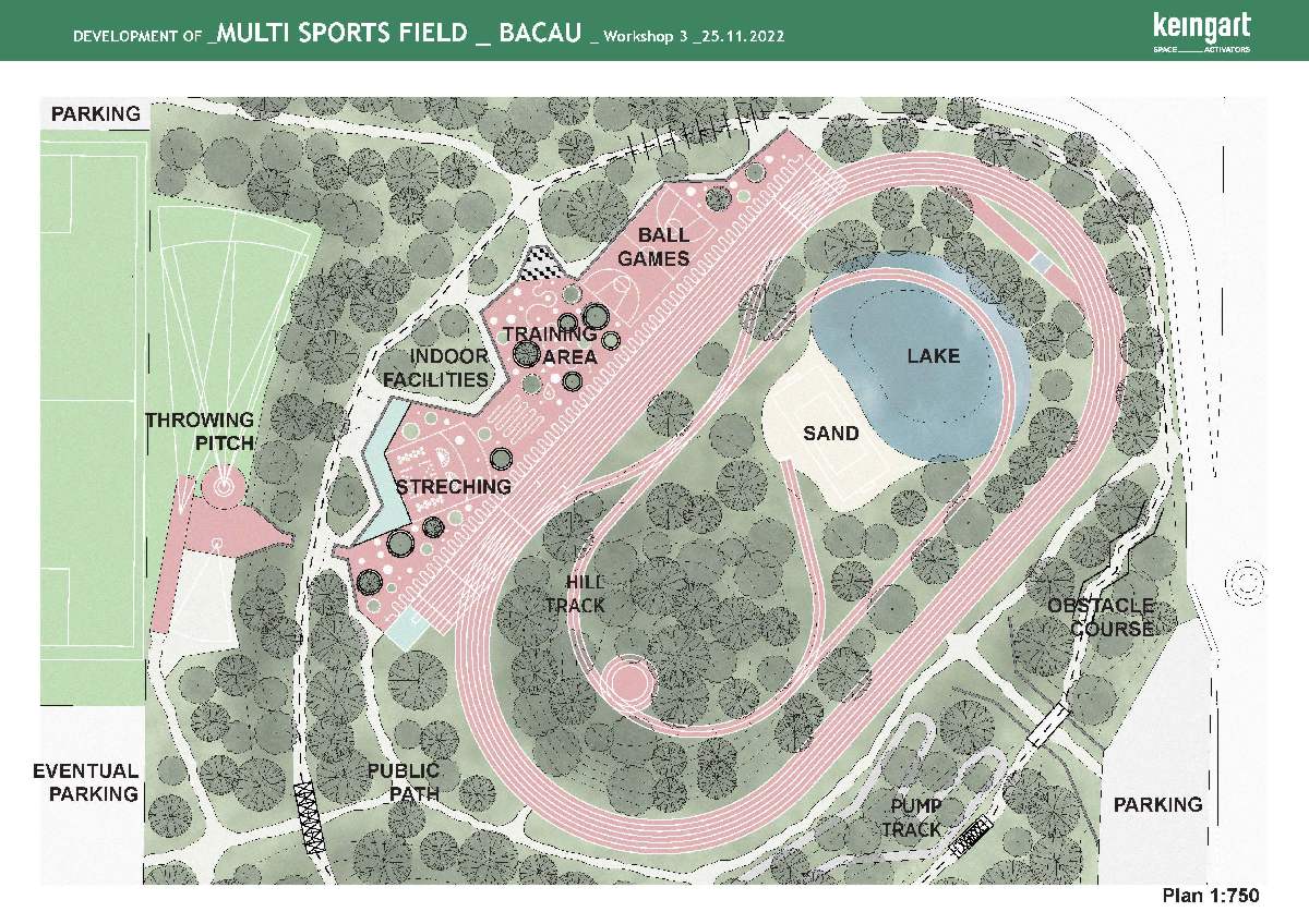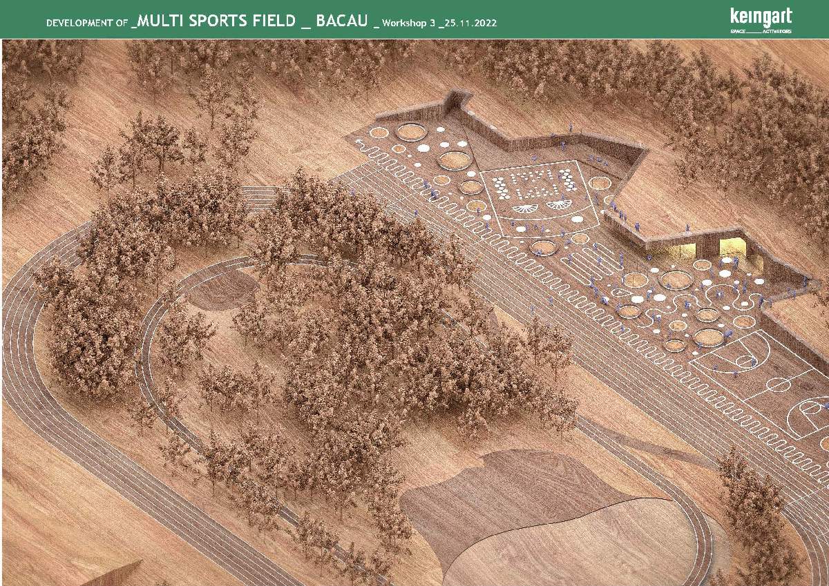„Va fi o zonă de sport plus agrement ce propune un nou concept: să trăim activ din punct de vedere fizic”, a subliniat președintele Consiliului Județean, Valentin Ivancea, care estimează că întreaga construcție va fi gata în doi ani. Proiectul final prezentat vineri de Flemming Overgaard a reunit cele mai importante elemente din cele trei variante („Pădurea activă”, „Poiana sportivă” și „Parcul sportiv urban”) dezbătute în septembrie de un auditoriu compus din reprezentanți ai administrației locale, CSM Bacău, SCM Bacău, CS Știința, AJ Fotbal, AJ Atletism și ai Universității „Vasile Alecsandri”.