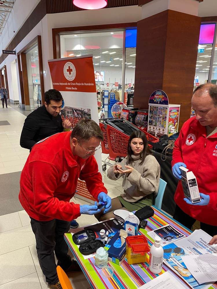 Crucea Roșie Română-Filiala Bacău a organizat testări gratuite ale glicemiei în galeria Centrului Comercial Supernova Bacău, o inițiativă ce a urmărit creșterea gradului de conștientizare privind depistarea timpurie a diabetului, o boală care afectează peste 1,2 milioane de români.