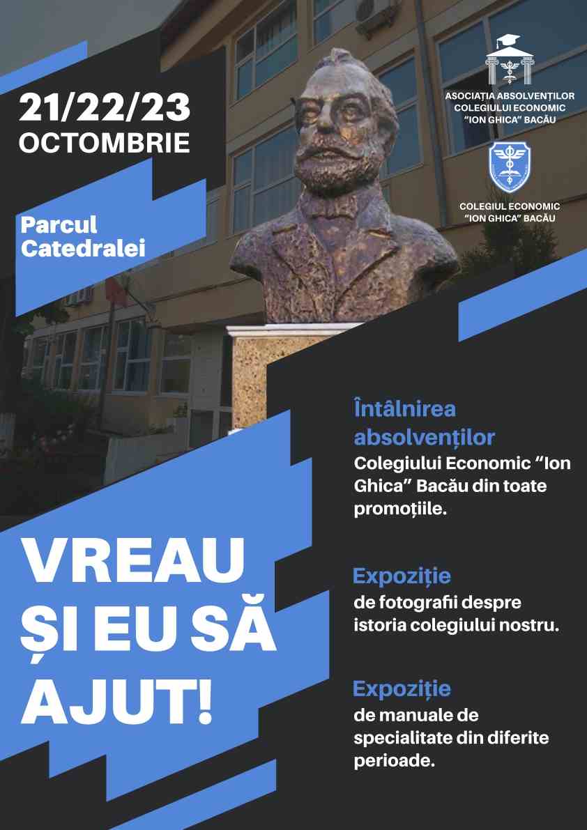 Eveniment cultural-economic în orașul nostru: Colegiul Economic „Ion Ghica” Bacău împreună cu Asociaţia Absolvenţilor Colegiului Economic „Ion Ghica” si Biblioteca Județeană „C. Sturdza” Bacău organizează un eveniment cu public în Parcul Catedralei.