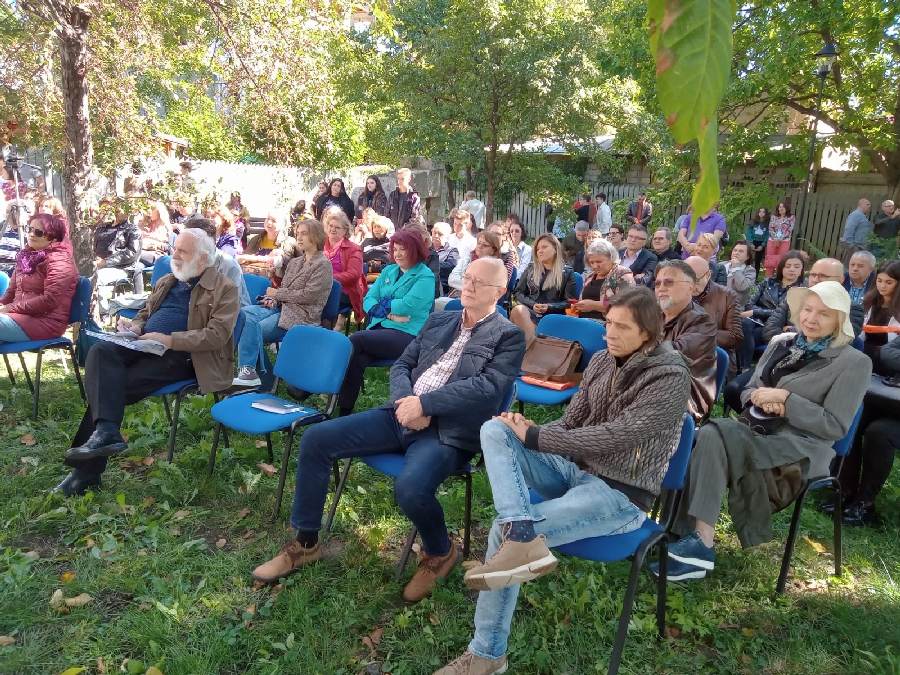 Zeci de băcăuani au asaltat pur şi simplu grădina casei. Glumind, criticul Adrian Jicu, directorul Festivalului, spunea că nici la nunta lui nu au fost atâţia oameni! Două premiere cel puţin: profesorul, scriitorul, cercetătorul şi criticul Constantin Călin a acceptat să-şi lanseze public recentul volum „Iarăşi Bacovia!…” (Ed. BABEL, Bacău), după formidabilul „Dosar Bacovia” (I,II,III), fiind al cincilea volum dedicat vieţii şi operei poetului George Bacovia, la care se adaugă alte referinţe din alte volume, după cum a mărturisit, la lansare profesorul Călin.