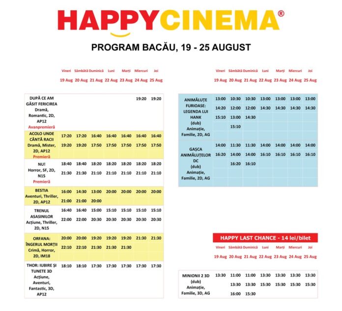 Program Happy Cinema Bacau, 19- 25 aug