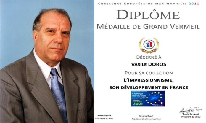 Colecționarii Vasile Doroș și Gheorghe Ardeleanu, din Bacău, au fost premiați la ediția din 2021 a Campionatului European de Maximafilie, care a avut loc la Valenciennes (Franța). Vasile Doroș a prezentat exponatul „Impresionismul, dezvoltarea sa în Franța”, care a obținut medalia Vermeil mare, iar Gheorghe Ardeleanu exponatul „Personalități ilustre ale literaturii franceze”, care a primit medalia Vermeil (vermeil este argintul aurit cu aur).
