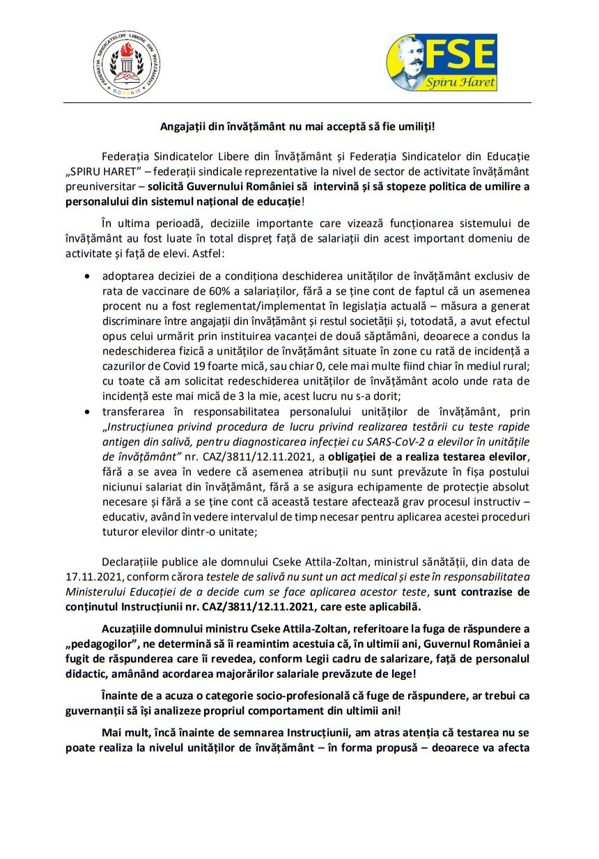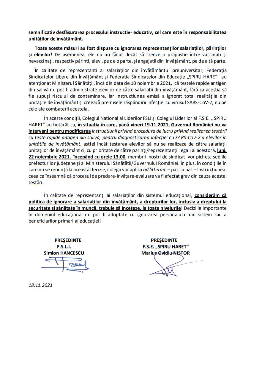 Cerem renunțarea de urgență renunțarea la măsura aberantă de închidere la ora 21.00 a restaurantelor pentru persoanele vaccinate și trecute prin boală și revenirea la un program normal de funcționare pentru acești clienți.