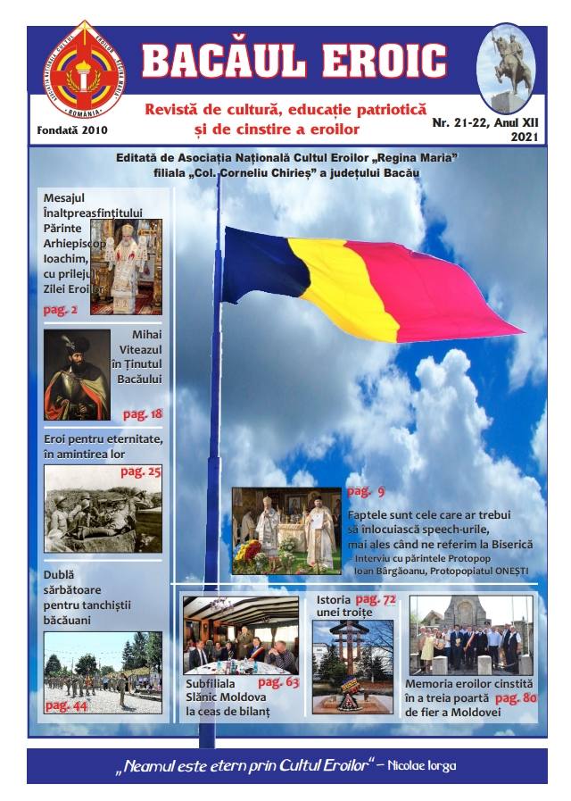 Filiala județeană „Colonel Corneliu Chirieș” a Asociației Naționale Cultul Eroilor (ANCE) „Regina Maria” a scos de sub tipar un număr dublu (21 și 22/2021) al revistei „Bacăul Eroic”, pe care o editează și pe care a fondat-o în anul 2010.