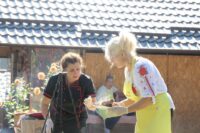 „Am fost nevoită să reduc drastic participarea, date fiind restricțiile impuse de pandemie, inclusiv perioada desfășurării, la doar 2 zile. Și asta deși am avut extrem de multe solicitări, mai ales pentru ultima zi a festivalului. M-am gândit să organizez acest eveniment în această perioadă a anului, când la o săpămână de la răvășitul oilor, ciobanii coboară cu turmele de la munte și, tradițional, se taie berbecii. Prin urmare, vedeta a fost berbecul la ceaun, cu mămăligăși brânză în coajă de brad, iar la desert le-am servit faimoasele «poale-n brâu», asezonate cu muzică populară, live. S-a văzut, încă o dată, că oamenii sunt însetați de distracție, avizi de libertate, clienții căutând cu frenezie tot, dar absolut tot ce este produs tradițional, sănătos, făcut în curtea țăranului de la munte. Supriza a fost pâinea făcută la țest, care a amuțit mulțimea, la propriu, toată lumea mușca cu nesaț din plămădeala parfumatăși frumos rumenită”, ne-a destăinuit Simona Drilea.