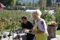 Patronul de la „Livada minunată” amestecă în ceaun tocana de oaie, mânuiește cu învârtoșenie făcălețul în mămăliga care se pârpolește domol la foc de lemne, înfășoară sarlamelele în foi de viță și își mai afundă adânc și mâinile în aluatul care va întruchipa brânzoiacele moldovenești „poale-n brâu”.