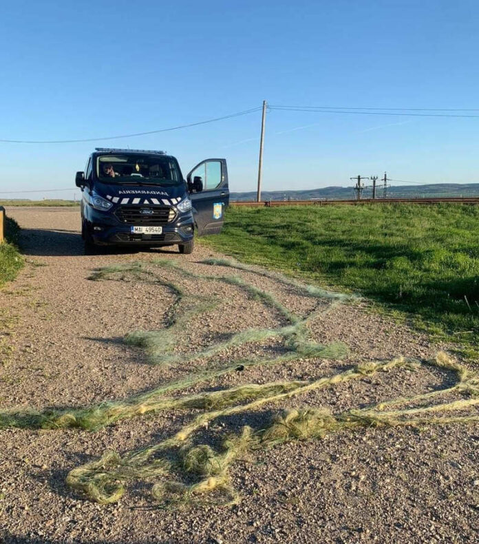 În urma acţiunii desfăşurate pe lacul Galbeni, jandarmii au depistat un bărbat care pescuia cu plasă de pescuit tip monofilament, interzisă de legislația în vigoare.