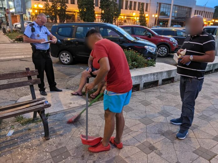 Poliția locală a decis să nu mai tolereze mizeria lăsată de băcăuani pe străzi și, pe lângă amenzi, îi pune pe cei prionși că mănânca semințe sau lasă hârtii în urmă să măture mizeria.