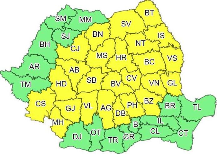 Judeţele marcate integral cu Cod portocaliu sunt Iaşi, Vaslui, Vrancea, Bacău, Neamţ, Covasna, Hunedoara, Mureş, Braşov, Dâmboviţa, Argeş, Vâlcea, Sibiu, Alba şi Hunedoara şi parţial Mehedinţi, Gorj, Prahova şi Buzău.