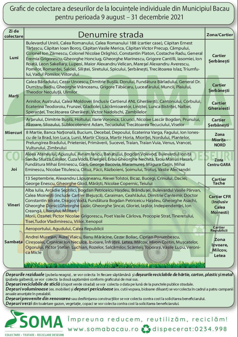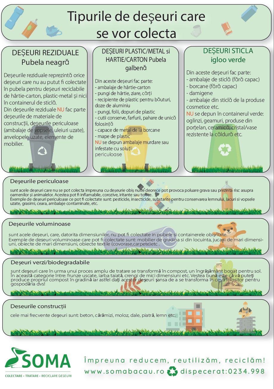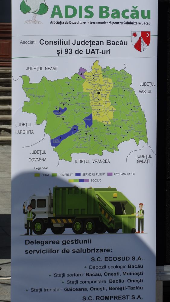 Începând cu data de 9 august deșeurile vor fi colectate selectiv în municipiul Bacău cât şi în cele 22 de comune – Berești Bistrița, Buhoci, Cleja, Fărăoani, Filipești, Gârleni, Gioseni, Hemeiuș, Horgești, Itești, Letea Veche, Luizi Călugăra, Măgura, Mărgineni, Nicolae Bălcescu, Prăjești, Răcăciuni, Racova, Sărata, Săucești, Tamași și Traian.