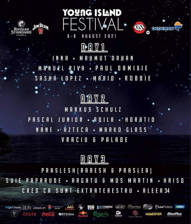 INNA, MAHMUT ORHAN, MARKUS SCHULTZ, PRASLESH, SUIE PAPARUDE , NANE, AZTECA, AQILA, ARGATU, CRED CA SUNT EXTRATERESTRU, MANUEL RIVA, PASCAL JUNIOR, PAUL DAMIXIE , SASHA LOPEZ și multe alte nume sonore vor concerta pe scena amplasată la Insula de Agrement.