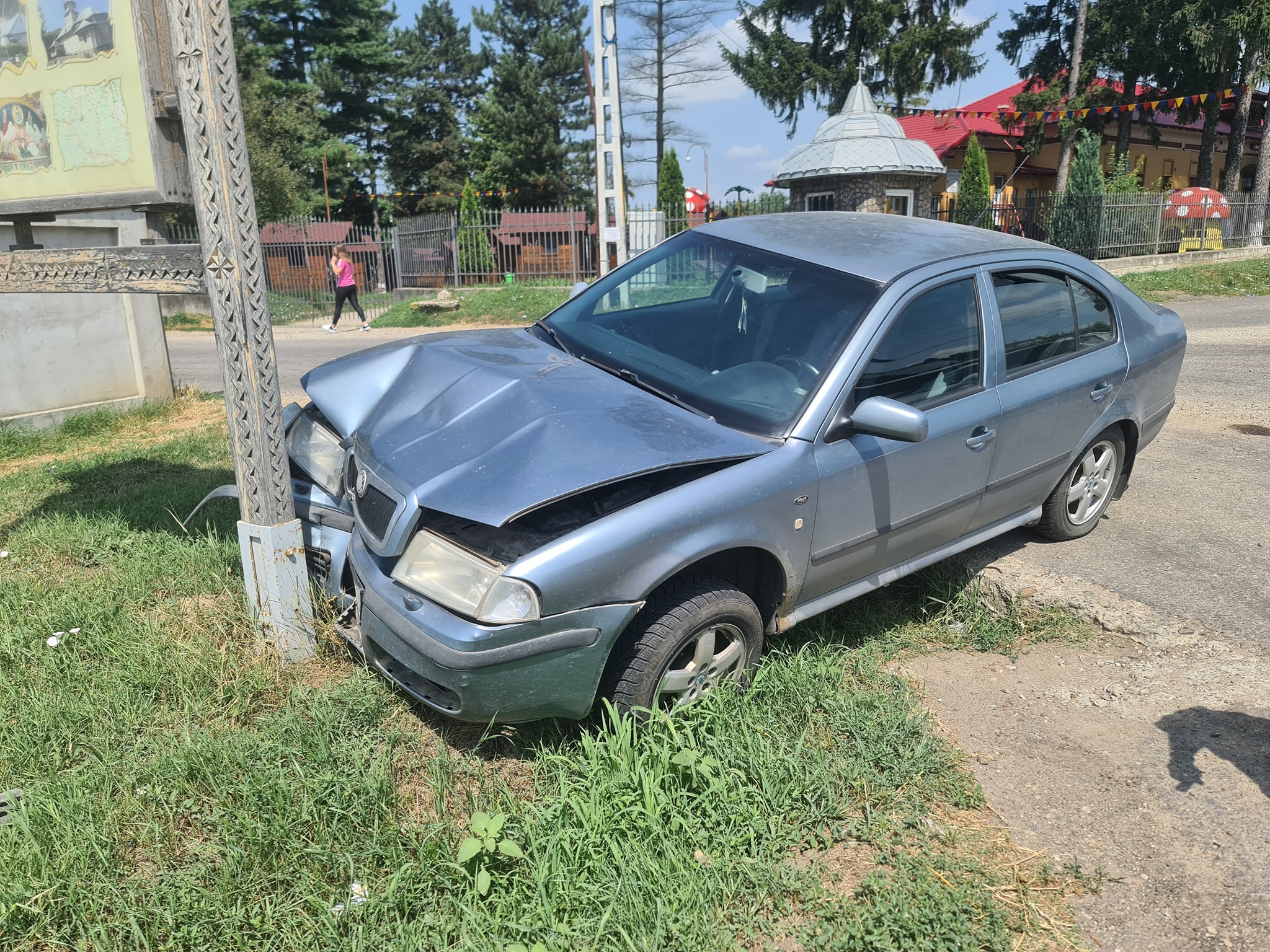 Un autoturism parcat pe acostament, neasigurat cu frâna de mână , a pornit de unul singur la plimbare și s-a oprit într-un stâlp.